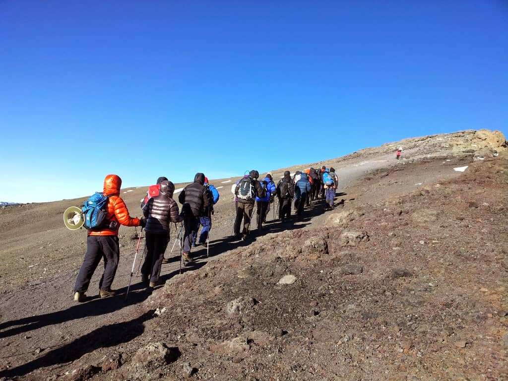 After a good night’s rest and breakfast, we set off on our walk to Barafu camp at 4640m. The climb will take us across desolate scree slopes with no vegetation around us at all. It’s a tough steep walk made more difficult by the altitude. On arriving at camp we eat and spend the afternoon resting as we prepare for a long night and day ahead. It is important to keep hydrated and warm. We have an early dinner and then try to get some sleep as we will be getting up at between 11pm and 12pm to start the climb to the summit.